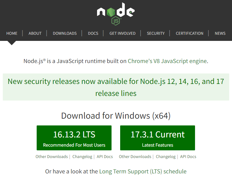 따라서 Node.js 를 최신 버전으로 업데이트 해줘야 한다.